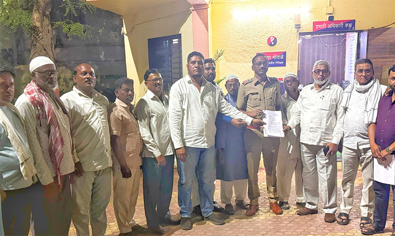 मुस्लिम समाज मंचाच्या वतीने सहाय्यक पोलीस निरीक्षक रामेश्वर मोताळे यांना निवेदन देण्यात आले. निवेदनावर अब्दुल रऊफ जनाब, शेख जफर, शेख कुरबान, अनवर खाटीक, रियाज मेंबर, आसिफ मेकॅनिक, याकुब खान, फिरोज सेठ, वसीम जनाब, मुदस्सर नजर, सलीम उस्मान, मोहम्मद रियाज, जलील खान, असलम खान, शेख मोहसीन यांच्यासह अनेक सदस्यांच्या सह्या आहेत.