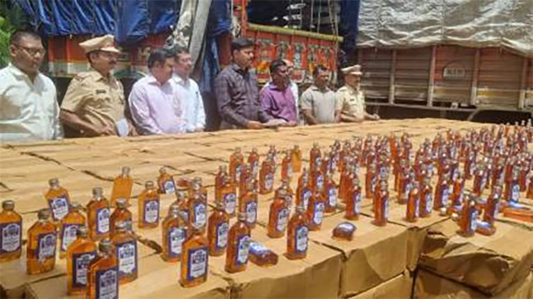ठाणे (सहसंपादक लक्ष्मीनारायण वन्नम) । जिल्ह्यातील मुंबई – नाशिक महामार्ग, सोनाळे गावच्या हद्दीत एच.पी पेट्रोल पंपाजवळ (ता. भिवंडी) परराज्यातील मद्याची वाहतूक करणाऱ्या वाहनावर २७ जानेवारी रोजी कारवाई करण्यात आली. या कारवाईत गोवा राज्यात निर्मित महाराष्ट्र राज्यात विक्रीस बंदी असलेल्या रॉयल ब्ल्यु माल्ट व्हिस्की ब्रॅण्ड मद्याचे १४०० बॉक्स अर्थात १८० मि.ली क्षमतेच्या ६७ हजार २०० बाटल्या दारूबंदी कायद्यातंर्गत जप्त करण्यात आल्या. तसेच आयशर कंपनीच्या एमएच ०४ एलवाय ४१३३ क्रमांक असलेल्या सहाचाकी वाहनासह, एक मोबाईल फोन असा एकूण १ कोटी ७२ लाख ९४ हजार रूपये किंमतीचा मुद्देमाल जप्त करण्यात आला.